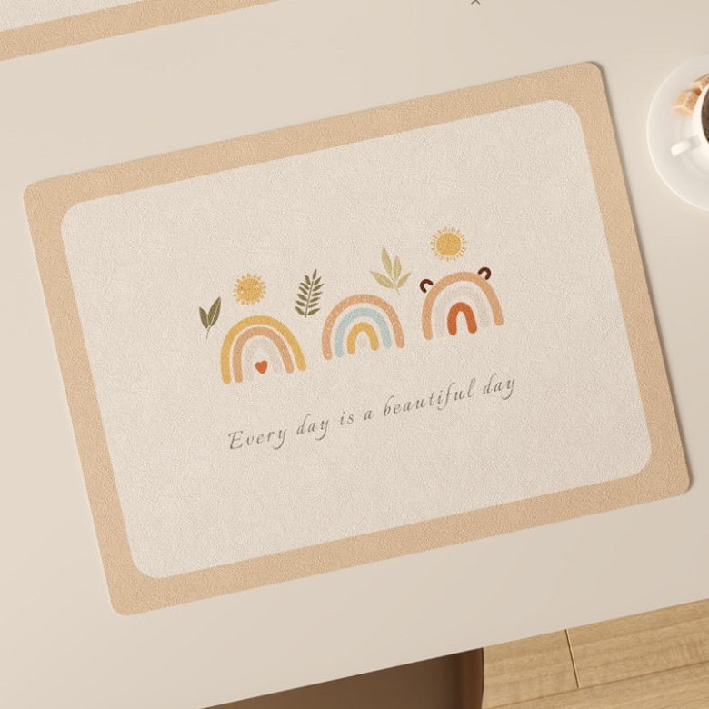 方形單面印花皮革餐墊-可愛塗鴉 (款式隨機)
