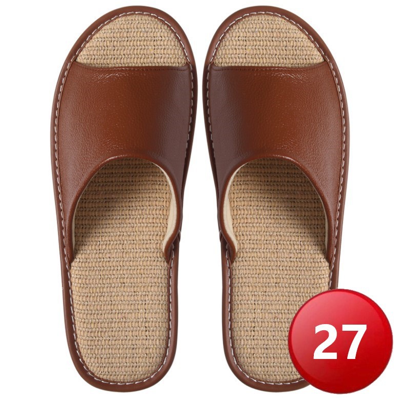 四季亞麻真牛皮拖鞋-淺咖 (27)