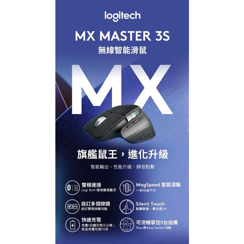 Logitech羅技MX Master 3S無線智能靜音滑鼠