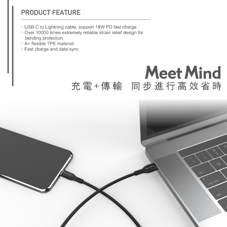 Meet Mind USB-C to Lightning PD 快速充電傳輸線