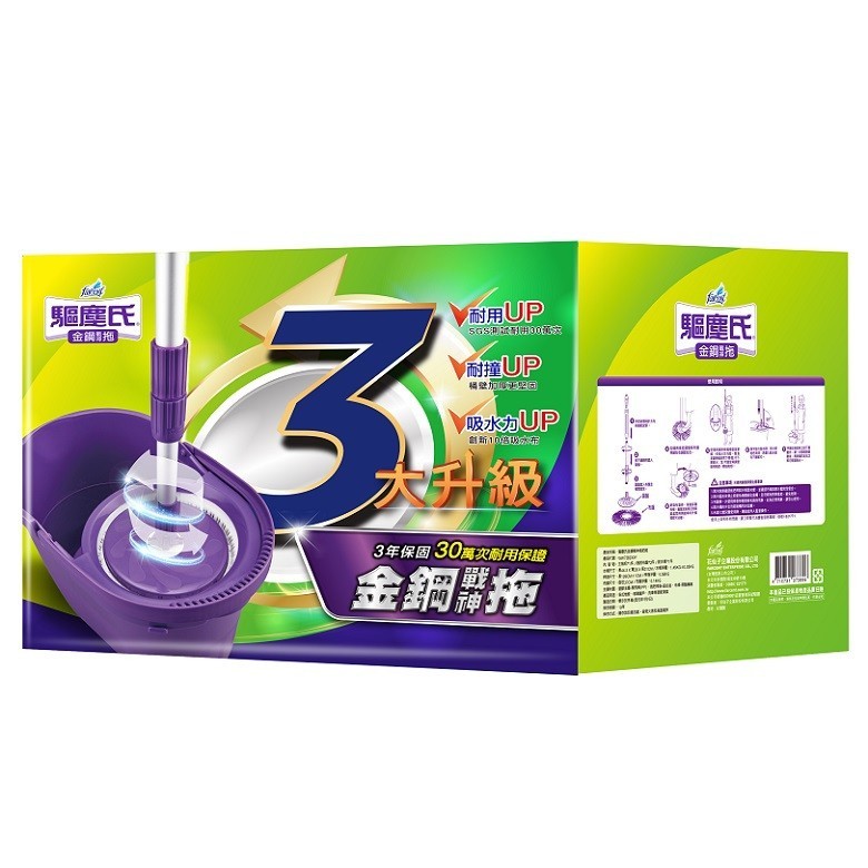 驅塵氏金鋼戰神拖把組 (一桿一桶兩布)