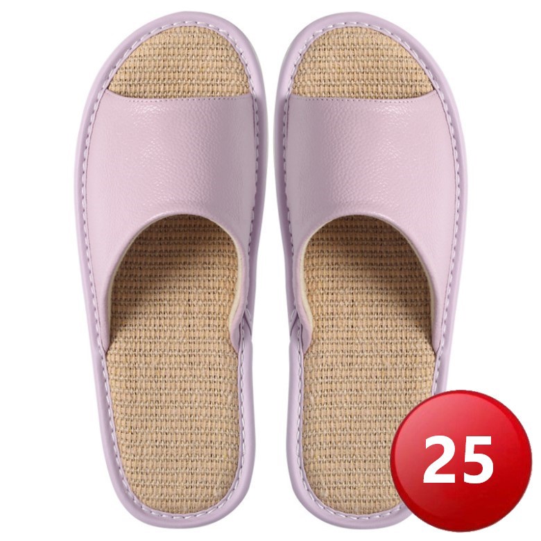 四季亞麻真牛皮拖鞋-淺紫 (25)