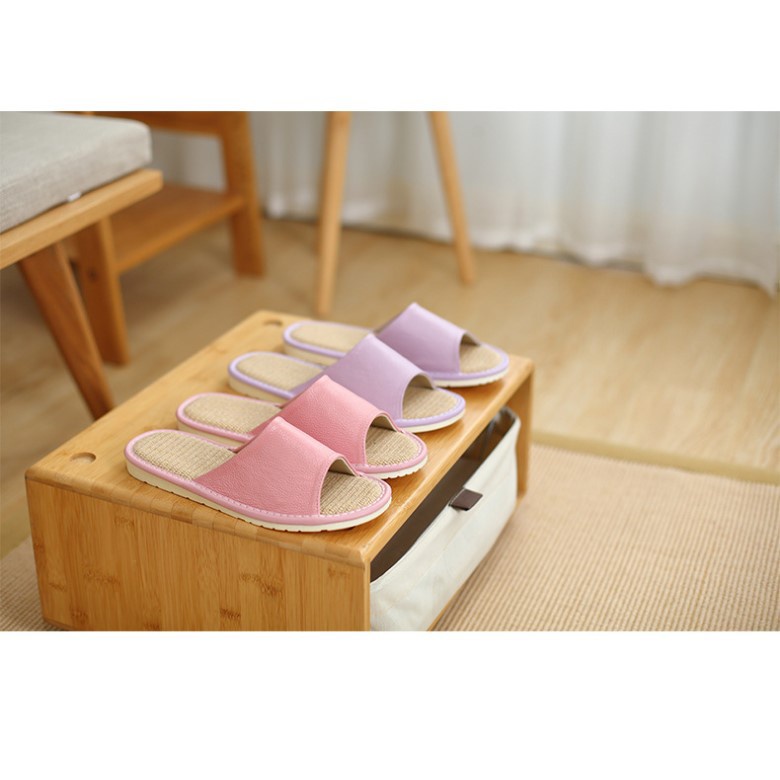 四季亞麻真牛皮拖鞋-淺紫
