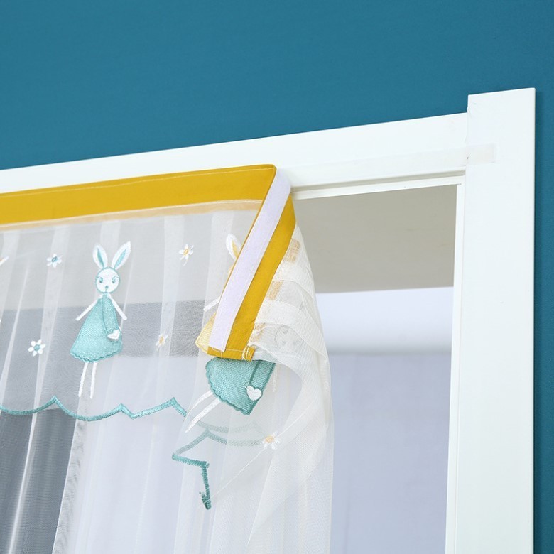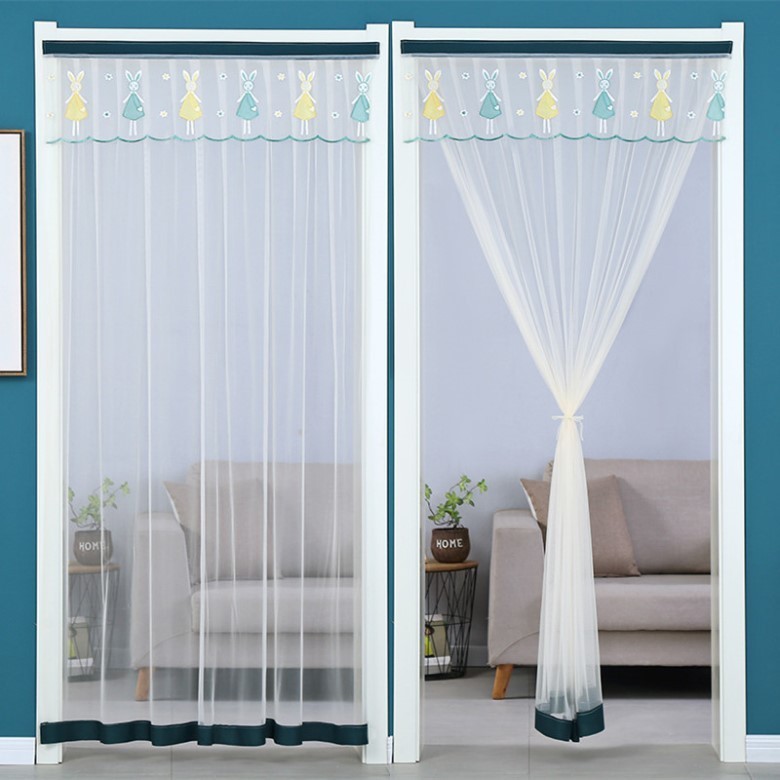 免打孔透氣防蚊紗質門簾 (小兔綠)