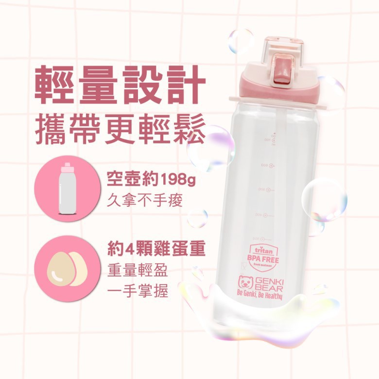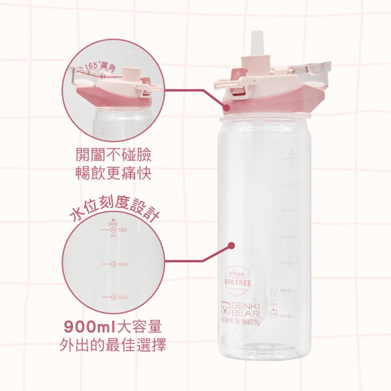 GENKI BEAR勾勾手運動水壺900ml (粉)