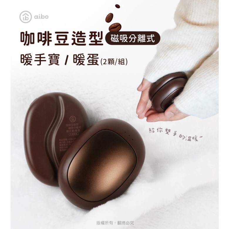 aibo 咖啡豆造型磁吸分離式暖手寶/暖蛋