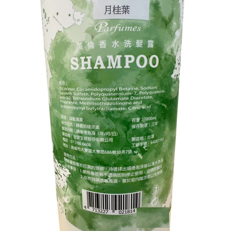 箱購免運Parfumes英倫香水洗髮露 (月桂葉 1800ml*6瓶/箱)