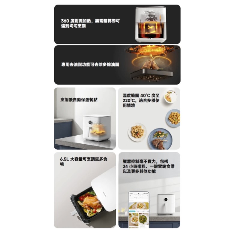 包裝內含:小米智慧氣炸鍋 6.5L、烤架、說明書