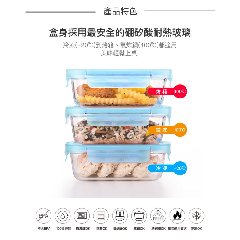 材質:盒身-硼矽酸玻璃;上蓋-PP聚丙烯;密封條-矽膠