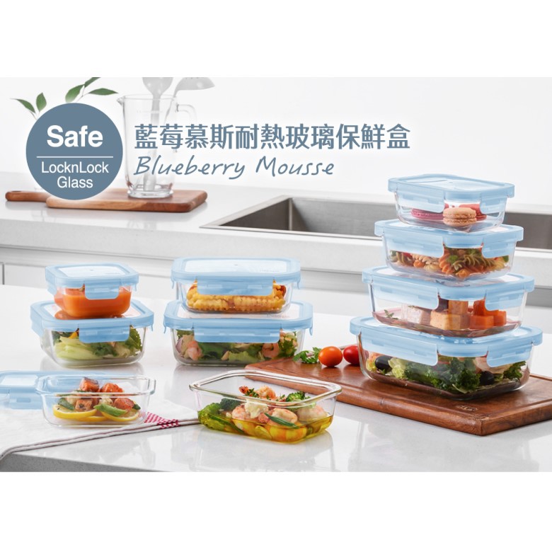 樂扣藍莓慕斯耐熱玻璃保鮮盒長方形 (1040ml)